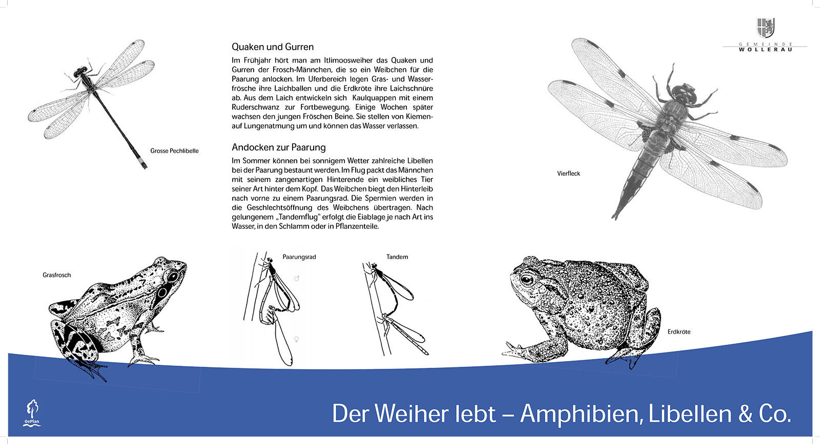 Für drei Flachmoore von nationaler Bedeutung in der Gemeinde Wollerau wurde ein Informationskonzept erarbeitet und der Gemeinderat und die kantonale Fachstelle bezüglich Massnahmen zur Besucherlenkung begleitet. Es wurden diverse Informationstafeln (Übersichtstafeln, Thementafeln, Markierungstafeln) und ein Flyer über die Gebiete entwickelt.